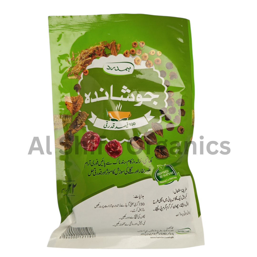 Hamdard Joshanda is a traditional Unani herbal tea known for its soothing and health-promoting properties. It helps relieve cough, sore throat, and mild respiratory discomfort while supporting immunity and overall wellness.